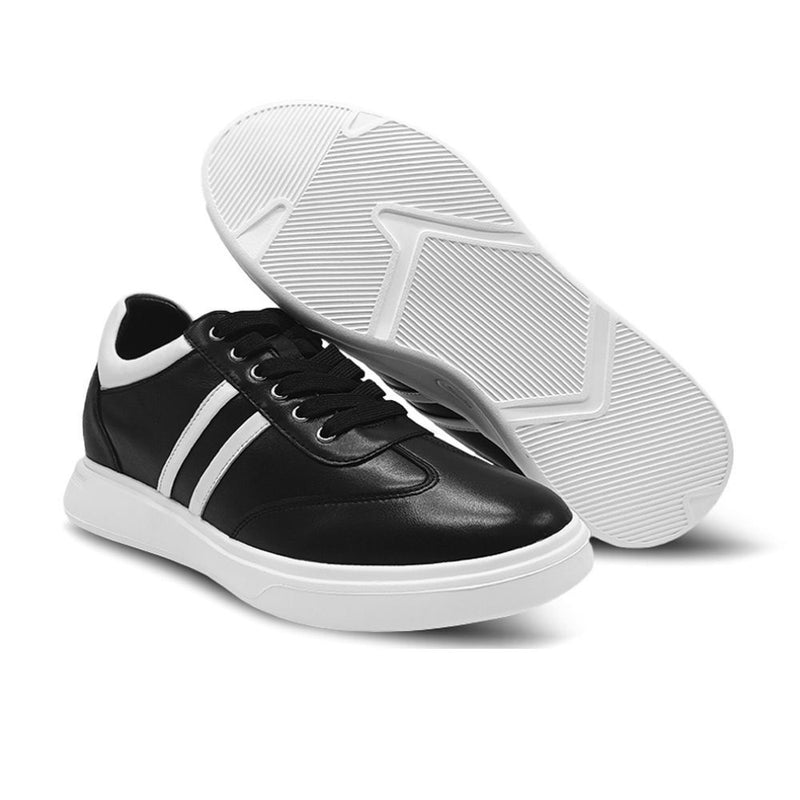 The total height increase of these eye-catching black casual sneakers includes the visible outsole and the hidden insole.