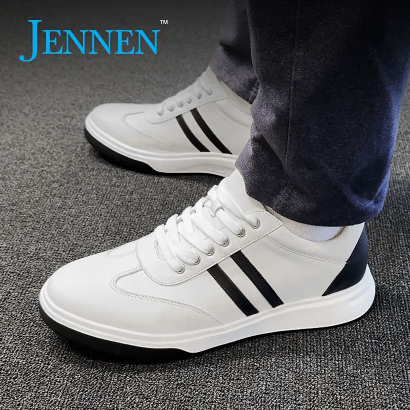 These easygoing white casual lace-up sneakers will make you 6cm taller without compromising comfort. The height increase of these shoes includes the visible outsole and the hidden insole.