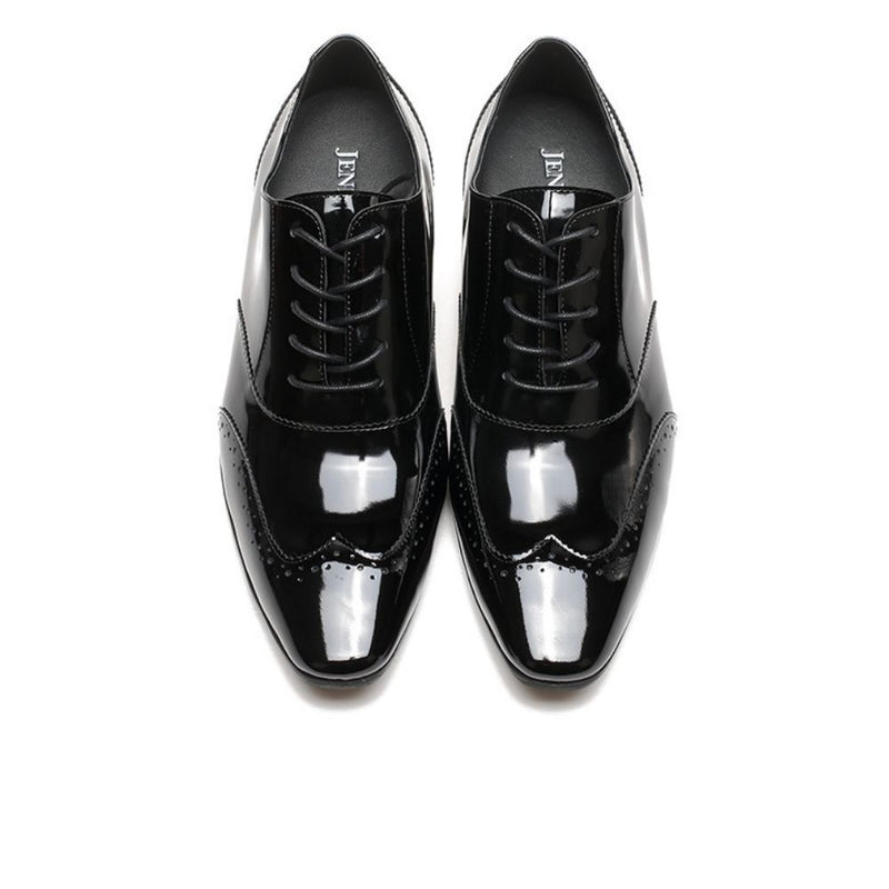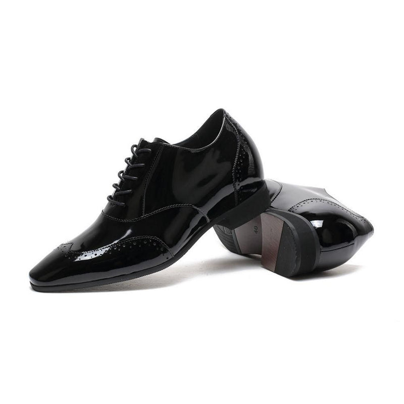 Introducing the Mr. Aristotle Patent Wedding Shoes, the ultimate in elegance and height-boosting footwear for men. These leather shiny elevator shoes are made with premium-grade cow leather and a plastic coat, giving them a unique sheen that will make you stand out on your special day. The outsole is made with premium rubber for durability, while the insole is made with non-compressing polyurethane and a JENNEN cushion comfort layer for all-day comfort.