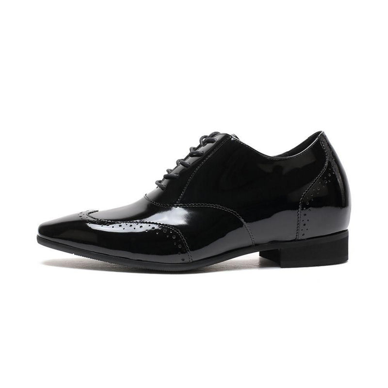 What sets the Mr. Aristotle Patent apart is the built-in, hidden lift insole, which gives you a total height increase of 7cm. The visible outer heel thickness is 2.5cm, while the built-in lift insole thickness is 4.5cm. This means you'll look taller and more confident on your wedding day, without sacrificing comfort.