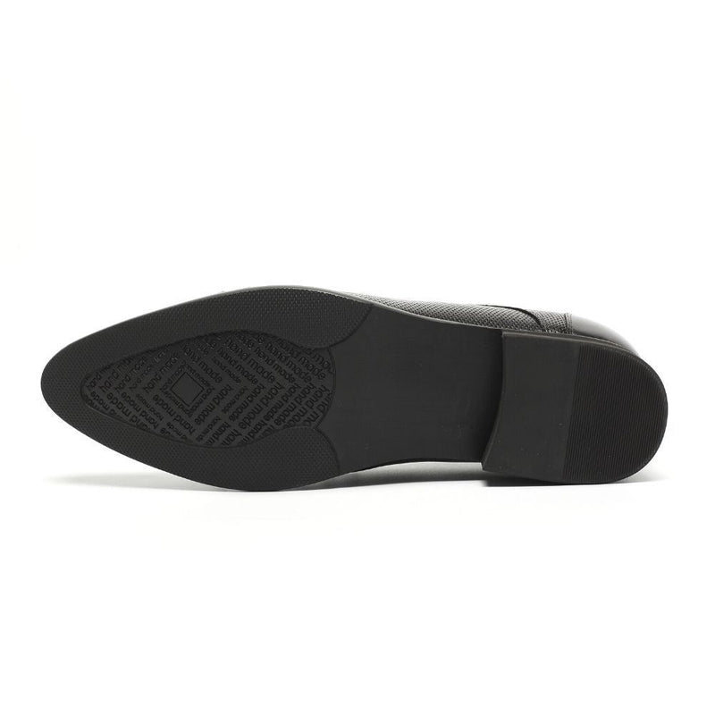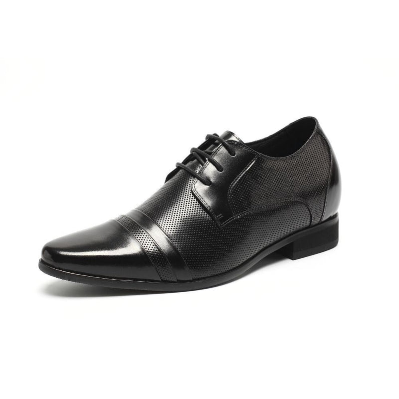 The total height increase of these formal elevated men's shoes includes the visible outsole and hidden insole.