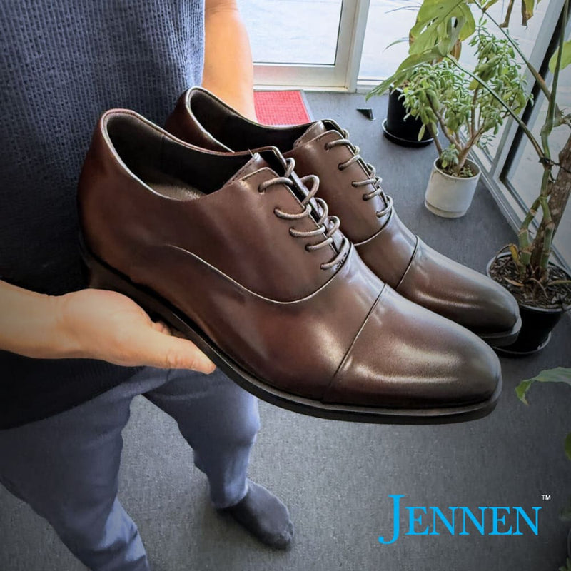 These dark brown oxford height-increasing formal shoes will increase your height by 7cm, and include the visible outsole and hidden insole.