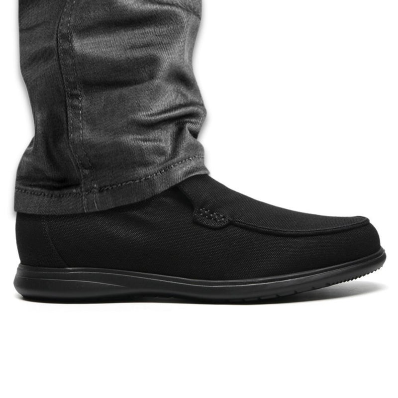 This black height increasing slip-on shoes include the visible outsole and hidden insole.