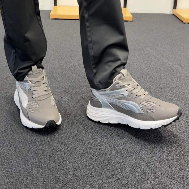 These shoes are made to move with you. The grey microfiber upper has a sporty look, with mesh panels that let your feet breathe throughout the day. The white midsole gives it a clean, modern feel, while the black outsole keeps you steady on your feet. We’ve added a pull tab at the back and classic laces to make them easy to slip on and adjust—whether you're heading out for coffee or catching up with mates after work.