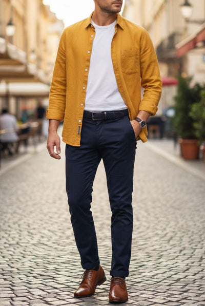 Stepping into the spotlight with a blend of classic luxury and modern edge, these premium leather shoes offer a sophisticated foundation that transitions effortlessly from gala events to upscale street style. The featured ensembles demonstrate their incredible range, anchoring everything from a classic black tuxedo for high-stakes evening events to sharp smart-casual looks featuring tailored grey chinos and a crisp light blue button-down shirt. For a fresher, more vibrant aesthetic, these shoes pair flawlessly with a mustard-yellow linen shirt over navy trousers, while a structured forest green blazer provides a bold, executive presence. Whether you choose the mirror-like finish of the patent black pairs for peak elegance or the rich tan leather variants for a modern check-patterned navy suit, these footwear choices ensure your silhouette remains authoritative and cohesive in any professional or social setting.