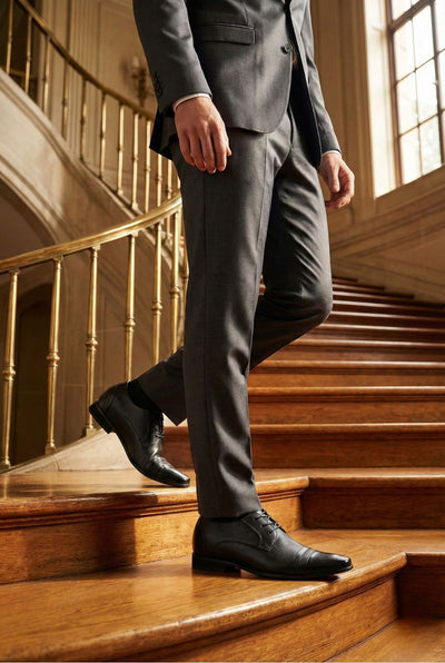 The total height increase of these formal elevated men's shoes includes the visible outsole and hidden insole.