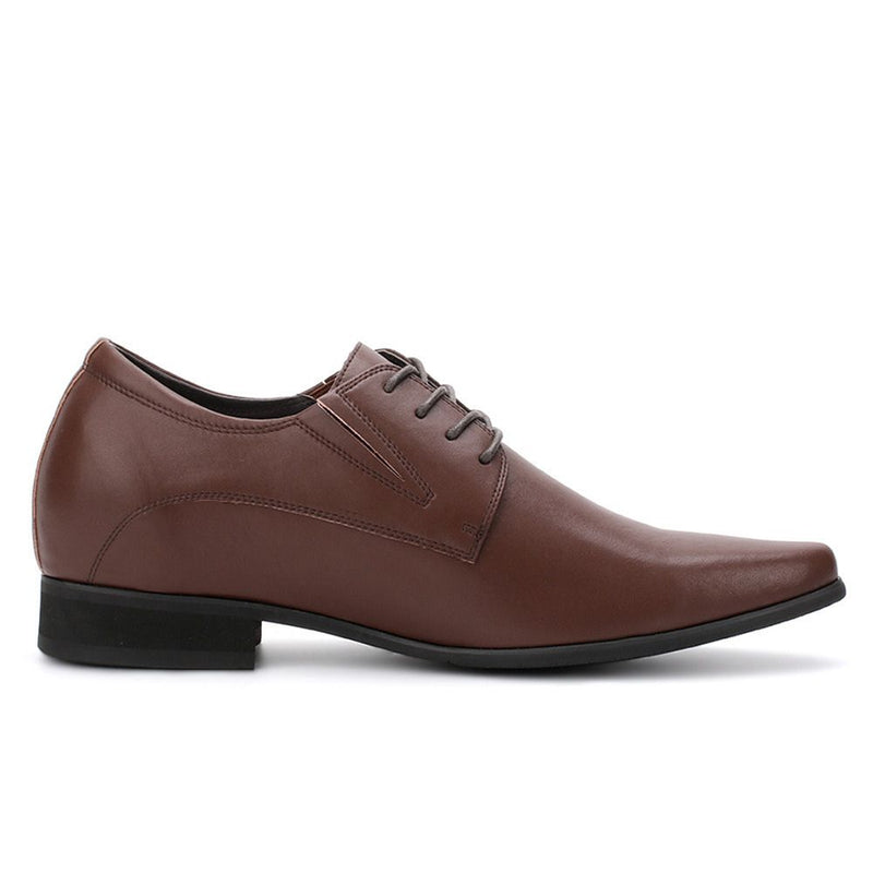 The total height increase of these brown vegan classic shoes for men includes the visible outsole and hidden insole.
