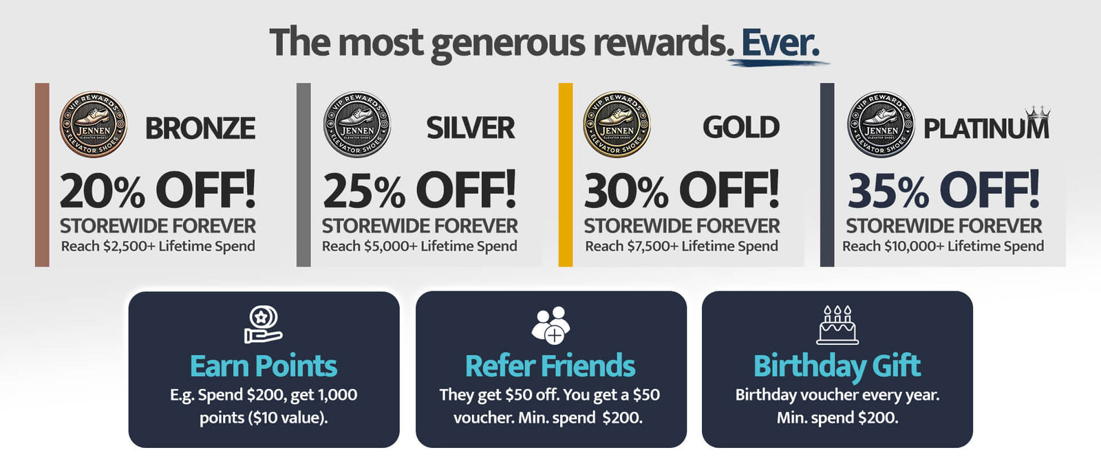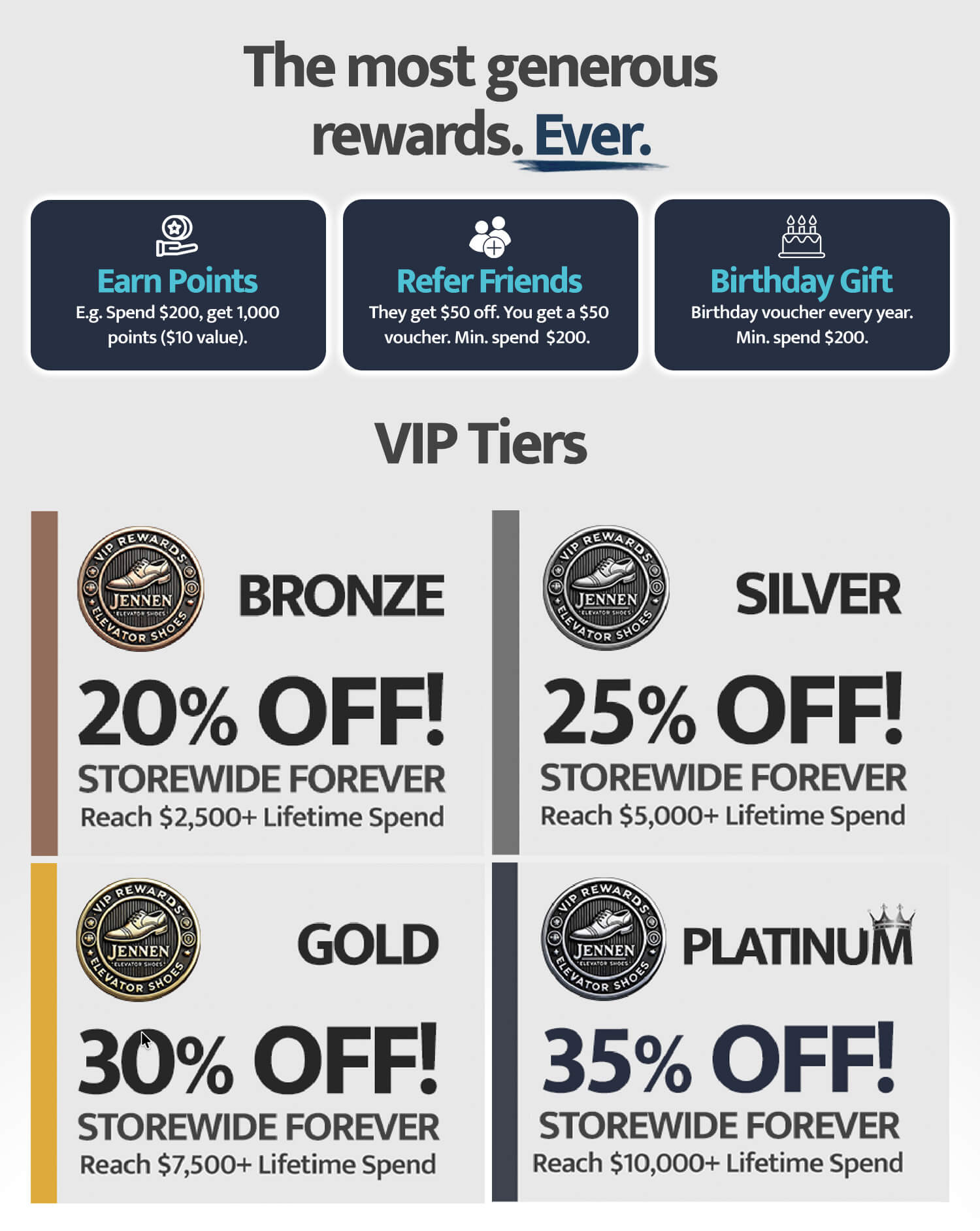 JOIN OUR VIP REWARDS CLUB Massive lifetime discounts, birthday gifts, reward points and more!