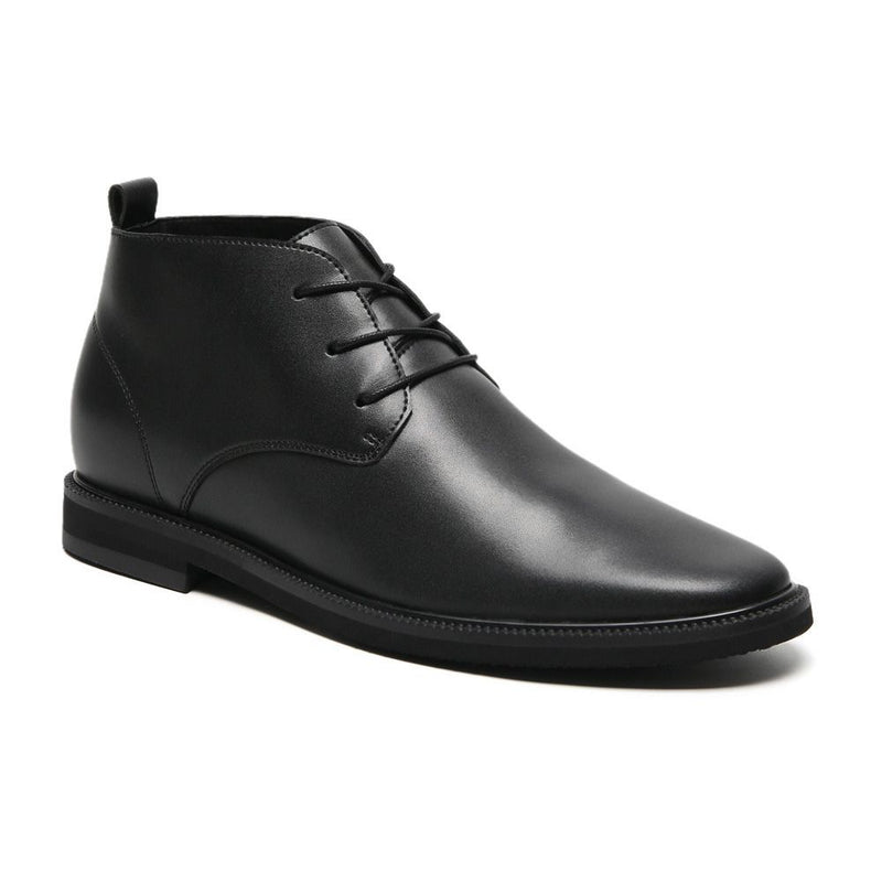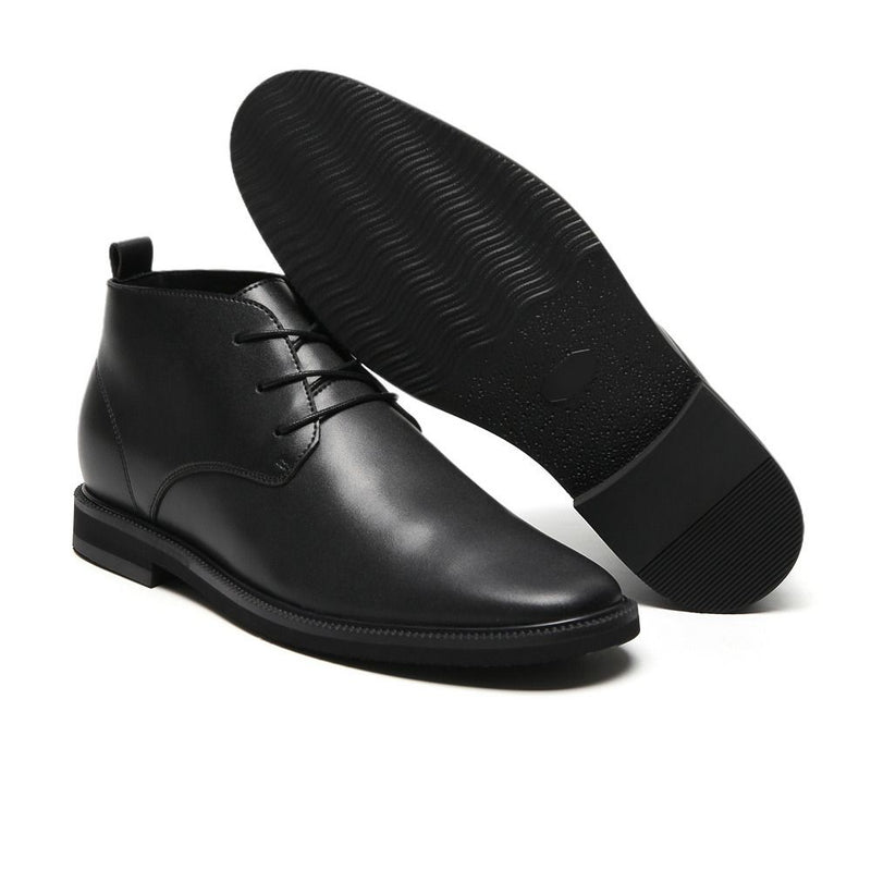 These classic black vegan boots will increase your height by 6cm, and include a visible outsole and a hidden insole.