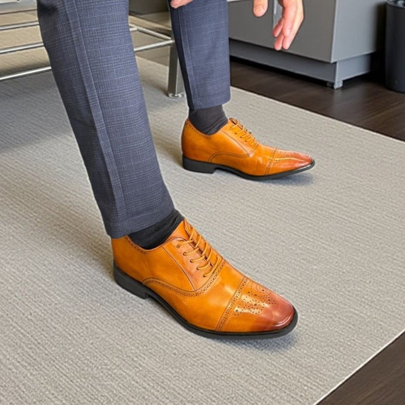 • Light brown Oxford Formal Height Increasing Shoes for Men