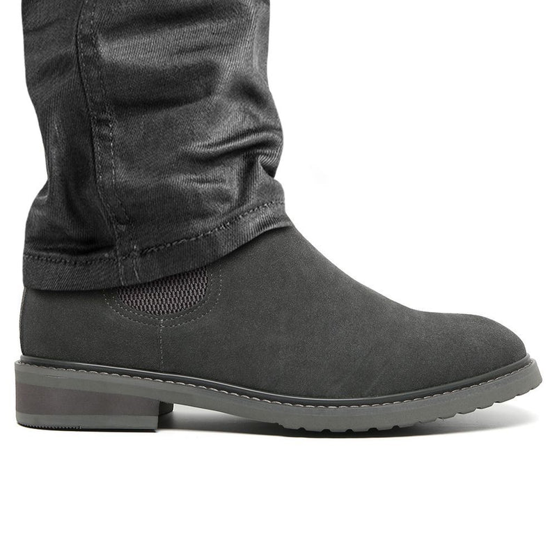 These classic dark grey suede height-increasing boots will increase your height by 7cm, and include the visible outsole and hidden insole.